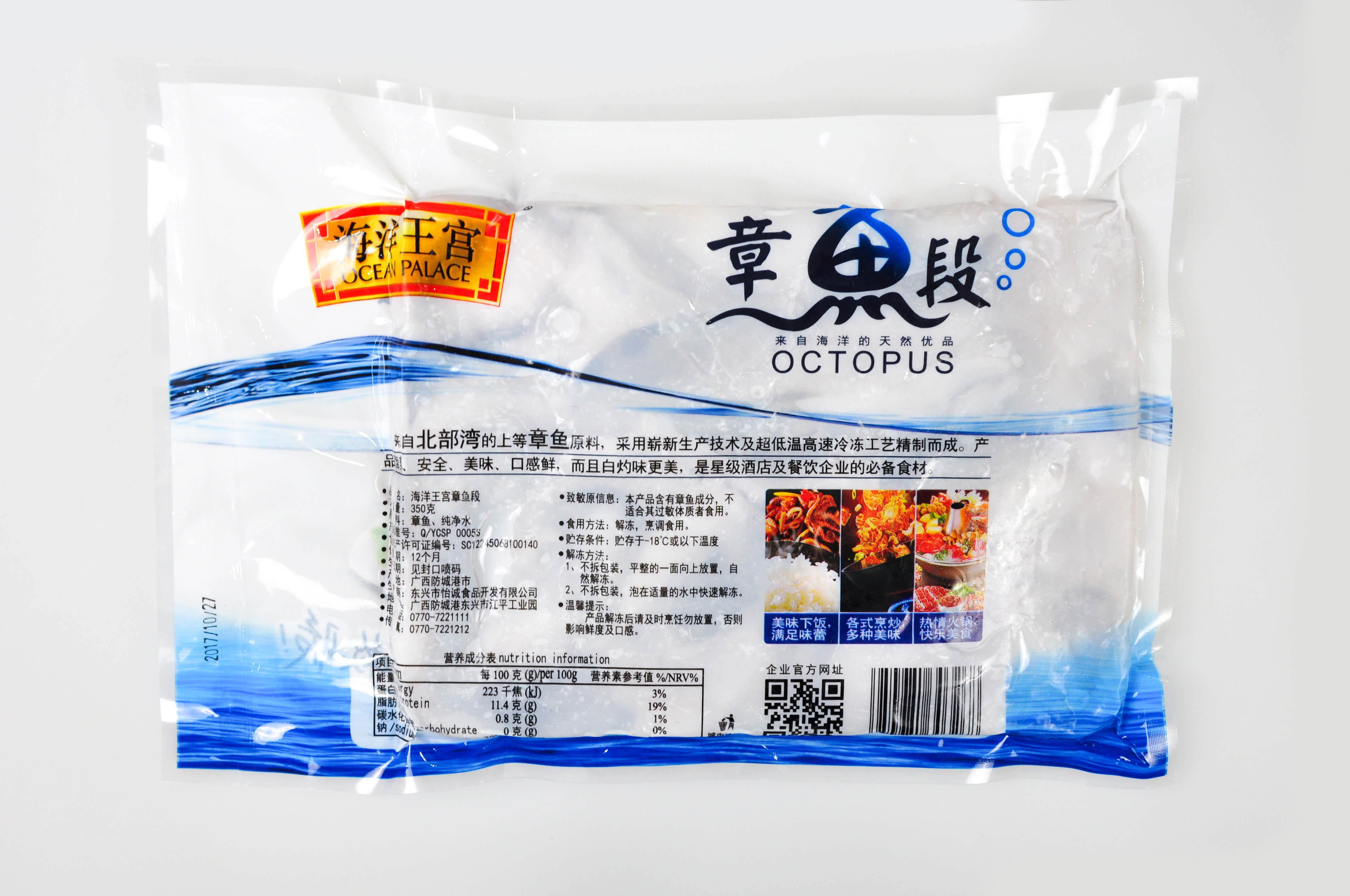八爪魚又名章魚,是一種棲身于深海的軟體動物,因擁有八條細長的觸腕而得名,其肉質(zhì)爽厚脆嫩,清甜多汁,致密而富有彈性,并且含有天然的牛磺酸,營養(yǎng)價值非常高,因此八爪魚不單單是美味的海鮮食材,而且也是民間食療進補的佳品。本產(chǎn)品取材于深海捕撈的鮮活八爪魚,選取肉質(zhì)肥厚的部分切成段塊,再以完善的冷凍保鮮技術(shù)和嶄新的高端流水生產(chǎn)線進行速凍加工,突出八爪魚段鮮美爽嫩的天然口感,同時段塊大小適中,入口爽彈,恰到好處。加工后的八爪魚段晶瑩嫩白,脆彈多汁,透滑清美,甘爽鮮香。產(chǎn)品可用于烹制各類菜肴,烹調(diào)方式包括清蒸、紅燒、干鍋、燜燉、熬制滋補湯品、滾涮火鍋等,用途豐富多樣。