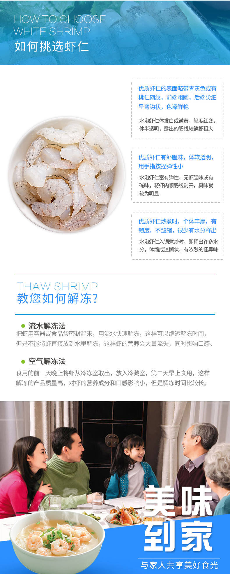 本產(chǎn)品選用北部灣海域捕撈的鮮活白對蝦為原料,運(yùn)用專業(yè)冷鏈物流運(yùn)輸設(shè)備,把白對蝦迅速地運(yùn)送到潔凈的生產(chǎn)車間內(nèi),專業(yè)處理去頭去殼,去除蝦線保留蝦尾,再沿蝦體中部將蝦肉剖開,切割過程中不損害蝦體天然肉質(zhì)纖維,最終使蝦肉整體呈蝴蝶狀。在高端流水生產(chǎn)線進(jìn)行生產(chǎn)加工下,蝴蝶蝦肉能在新鮮狀態(tài)下成為速凍產(chǎn)品,最大限度地保存了蝴蝶蝦肉的鮮美品質(zhì)。產(chǎn)品包裝美觀實(shí)用,分量充足,食用方便,蝦肉外形精致,口味鮮甜清新,可用于烹制黃金蝴蝶蝦、翡翠蝴蝶蝦等日常家庭菜肴或各式餐飲場合。
